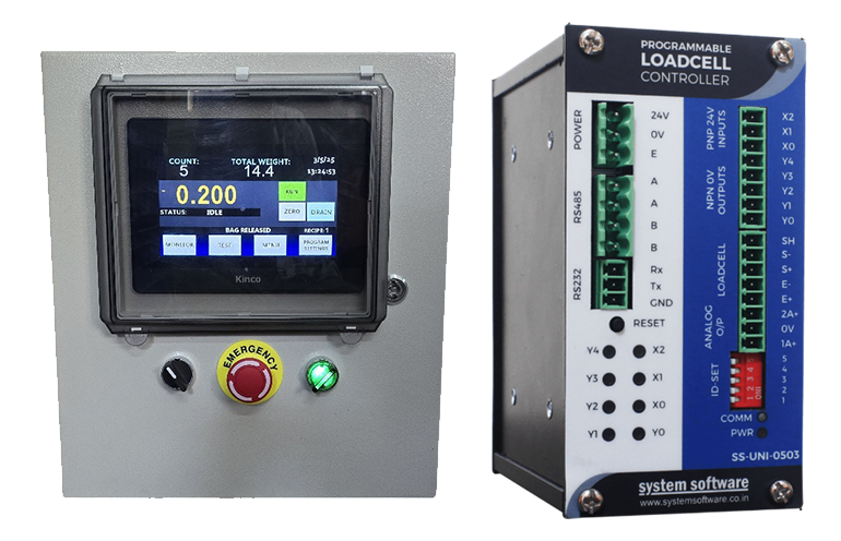 The bagging machine control system is a ready-to-use product developed for weighing based net/gross bagging machines. All operations of the bagging machine are controlled in this panel. All operational parameters are preset and developed as per the machine’s logic. This gives great flexibility for the OEMs to use this panel directly for their bulk weighing and bagging machines.