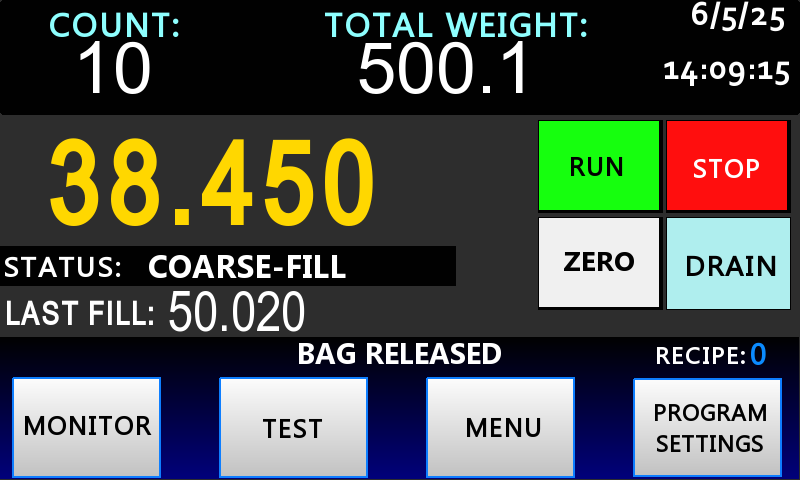 - Target Weight, Coarse Weight & In-flight weight setpoints